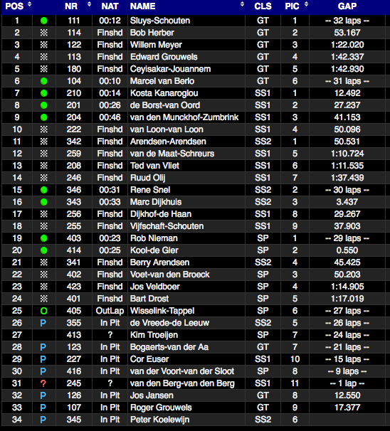 Nadat de herstart een feit was werd al snel het pitwindow geopend en ontstond de nodige chaos doordat diverse rijders de pits in gingen en anderen wat langer buiten bleven om even te genieten van de racesnelheid. Nadat iedereen de verplichte stop had ingelost werd duidelijk dat de equipe Sluys / Schouten en Willem Meijer elkaar het leven zuur maakten in gevecht om de leiding. Na enkele ronden waarin de twee BMW’s een prachtige battle leverden was het Sluys / Schouten die aan het langste eind trok en de leiding in handen nam. Willem Meijer verloor flink wat terrein door een kortstondig uitstapje. Bij het terug de baan oprijden schrok een andere deelnemer dermate dat die bijna de macht over het stuur verloor.