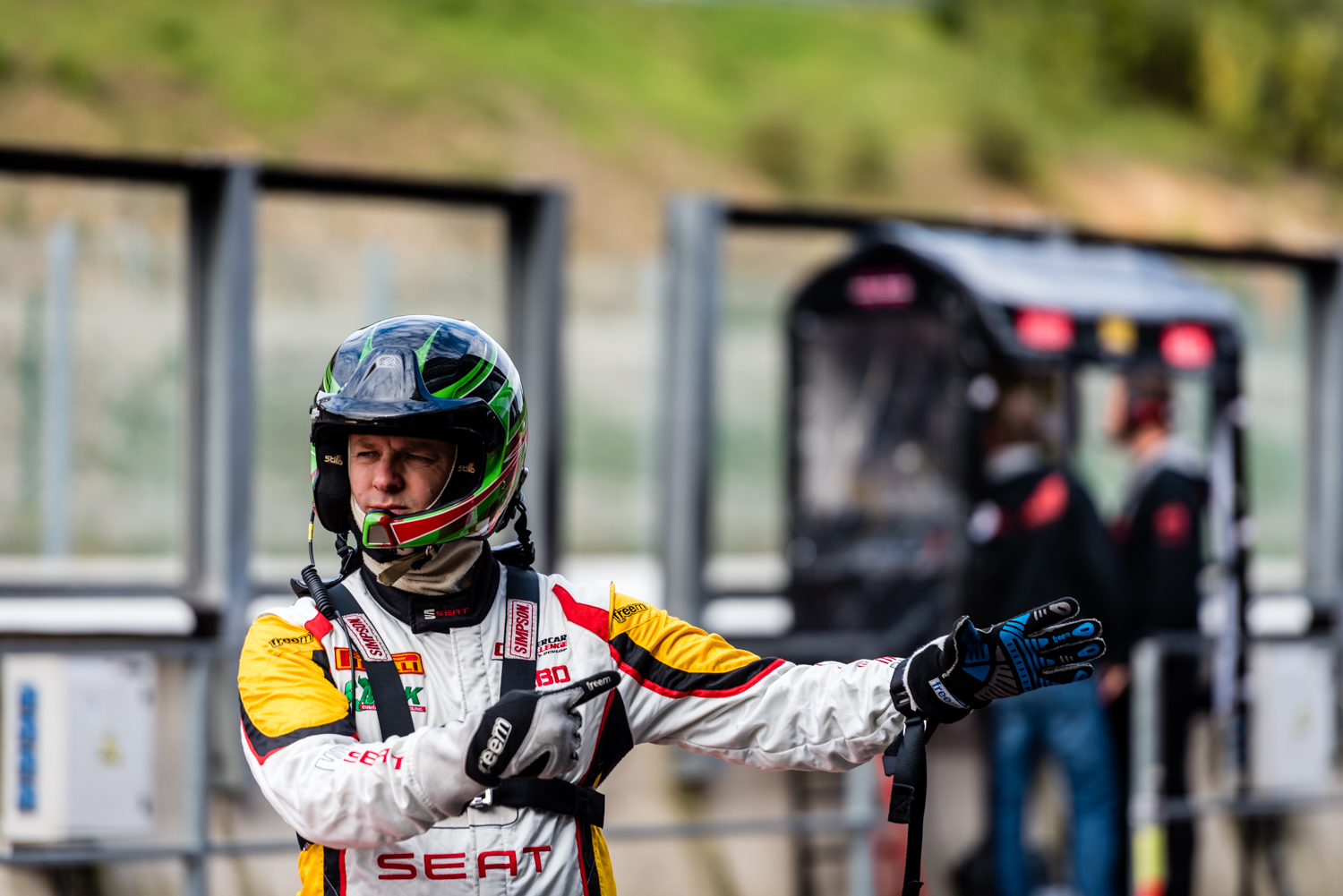 Nadat in aanloop naar de eerste race de vrije training en kwalificatie succesvol waren verlopen hadden Dennis de Borst en Martin de Kleijn goede hoop op een mooie racedag. De tijdtraining leverde de mannen de vierde startpositie in de Supersport divisie op. Zelfs het weer leek positief bij te dragen. Een tussen de wolken door blauwe lucht deed vermoeden dat het een mooie middag kon gaan worden. De start van de race van Dennis was prima te noemen, hij kon zich uitstekend meten met de overige deelnemers aan de kop van de divisie en leek mogelijk de strijd te kunnen aangaan voor een podiumklassering. Na een kwartiertje racen ging het in het drukke veld echter mis. Een Porsche zag de SEAT over het hoofd tijdens een uitremactie aan de binnenkant en reed Dennis finaal van de baan, hem achterlatend met een afgebroken voorwielophanging. Gedesillusioneerd gaf Dennis zijn visie: “Ik kon naar de kopgroep toerijden, het ging lekker. Ik kon de strijd aangaan met een Porsche die in de bochten langzamer was, dus ik wilde hem uitremmen in de bocht naar beneden na “Kamel straight”. Ik zat aan de binnenkant, maar hij zag me niet en stuurde gewoon in.” De kansen voor de eerste race waren daarmee direct verkeken.