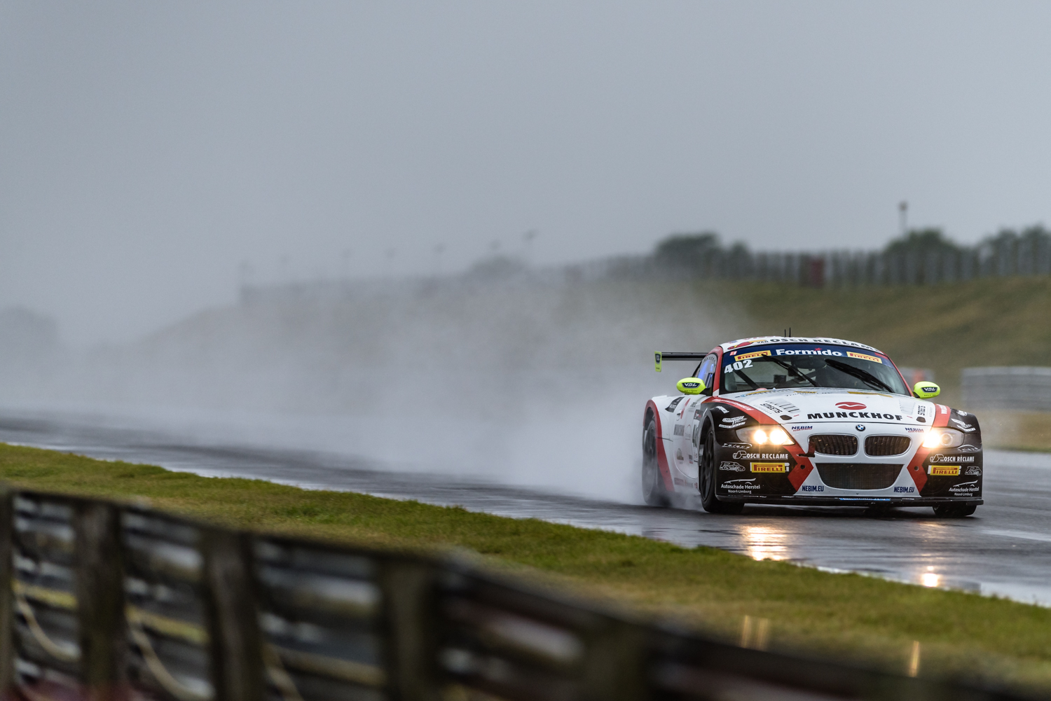 Na een testsessie op vrijdag moest Eric zaterdag aan de bak om zich te kwalificeren voor de race. Hij wist in de kwalificatie een goed uitgangspunt te behalen door direct naar de derde tijd in de Supersport divisie te rijden. De race later in de middag zou een lastige worden voor Eric. Een uur voor de start begon het te regenen en hield niet meer op, waardoor de baan kletsnat was en er een nieuwe reeks uitdagingen opdoemde voor de Supersport rijders. Snetterton is al een geheel nieuw circuit voor iedereen en er was nog geen meter op een natte baan gereden, waardoor het lastig was om de race in te gaan. Desondanks wist Van den Munckhof de Z4 op het asfalt te houden en een keurige zesde positie uit de strijd te slepen. “In de regen was het vooral een kwestie van overleven, het zicht was heel slecht en dan is het moeilijk als je de baan nog niet zo heel goed kent. Mijn missie in deze race was vooral om de wagen op de baan te houden en heel thuis te brengen. Dat is in ieder geval gelukt”, luidde de verklaring van de BMW Z4 coureur. Een aantal lokale rijders wisten door de baankennis vóór hem over de meet te komen en daardoor miste Eric het podium, maar pakte wel een flinke dosis punten. Daarnaast had de BMW coureur de schade van de vorige race nog vers in het geheugen en betrachtte daarom de nodige voorzichtigheid.