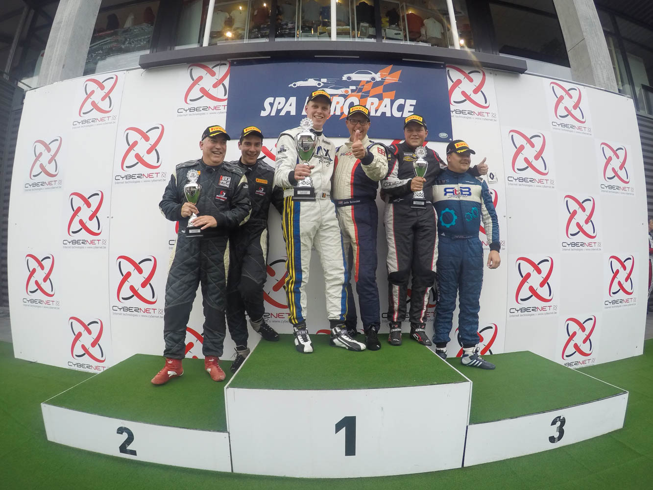 De hernieuwde kennismaking met de BMW verliep op zaterdag tijdens de kwalificatie prima voor vader (Joris) en zoon (Bas) Schouten. De tweede tijd van de Supersport divisie was al snel een feit in 2:34.625. Met toenemende neerslag was het een listige wedstrijd, maar Bas en Joris wisten zich kranig te weren. Vader en zoon toonden zich ware specialisten in de natte omstandigheden en reden naar de zege in de Supersportklasse, ondanks een extra pitstop voor regenbanden en een drive-through-penalty. Niet alleen behaalden ze de zege in hun divisie, ook algemeen bliezen ze een aardig deuntje mee door op de kletsnatte baan naar P5 algemeen te rijden. Joris vertelde: “We hadden wat technische problemen in de trainingen, maar Bas zette in de kwalificatie op gebruikte banden de tweede tijd. Hij had op nieuwe banden Blanchimont vol gas kunnen nemen! Gelukkig hebben we de technische dingetjes in de training eruit kunnen halen en stonden goed voorbereid aan de start van de wedstrijd. In de race heb ik in de regen eigenlijk maar drie rondjes op snelheid gereden, al snel kwam de safety car naar buiten en hebben we banden gewisseld. Een paar rondjes later kwam de call voor de reguliere stop en de rijderswissel.” Bas nam het stuur van zijn vader over en vertelde: “De jongens van JR hebben een top karretje neergezet, ook voor in de regen! Met een overwinning gaan we op naar morgen als we van P1 mogen starten.”