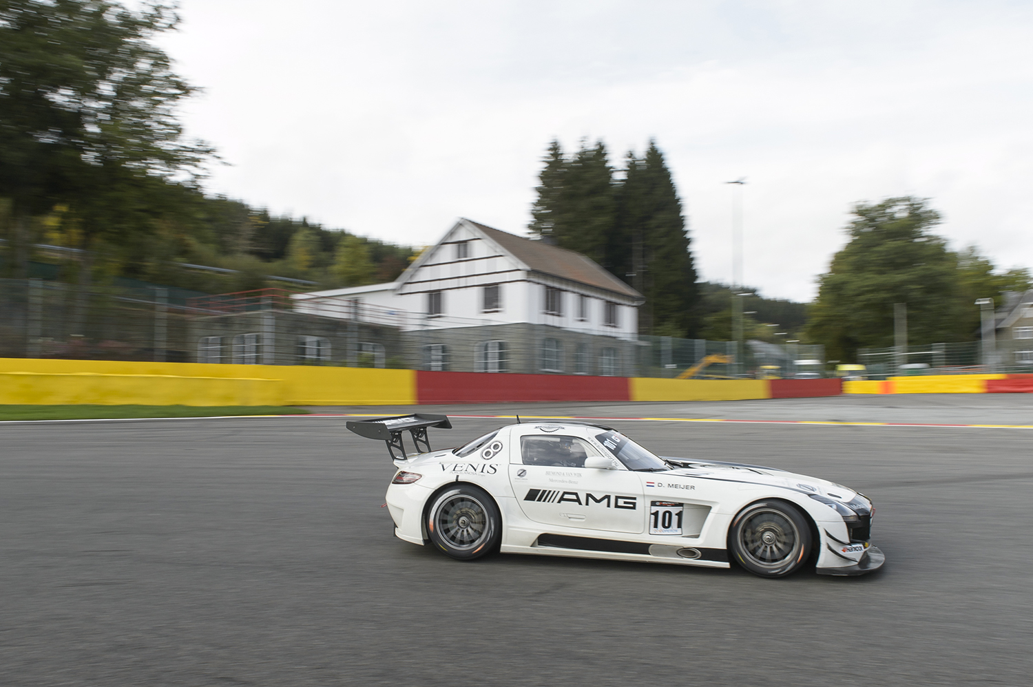 Zaterdag waren de weersomstandigheden kenmerken voor Spa-Francorchamps en kwam de regen met bakken naar beneden. Geen makkelijke omstandigheden voor Daan om zo de eerste meters te maken met de krachtige Mercedes AMG SLS GT3 op de roemruchte piste in de Belgische Ardennen. Hij noteerde direct een super tijd in de Super GT-divisie. “De wegligging van de Mercedes was top en kon ik in de lastige omstandigheden naar voren rijden,” aldus Meijer tevreden na de kwalificatie.