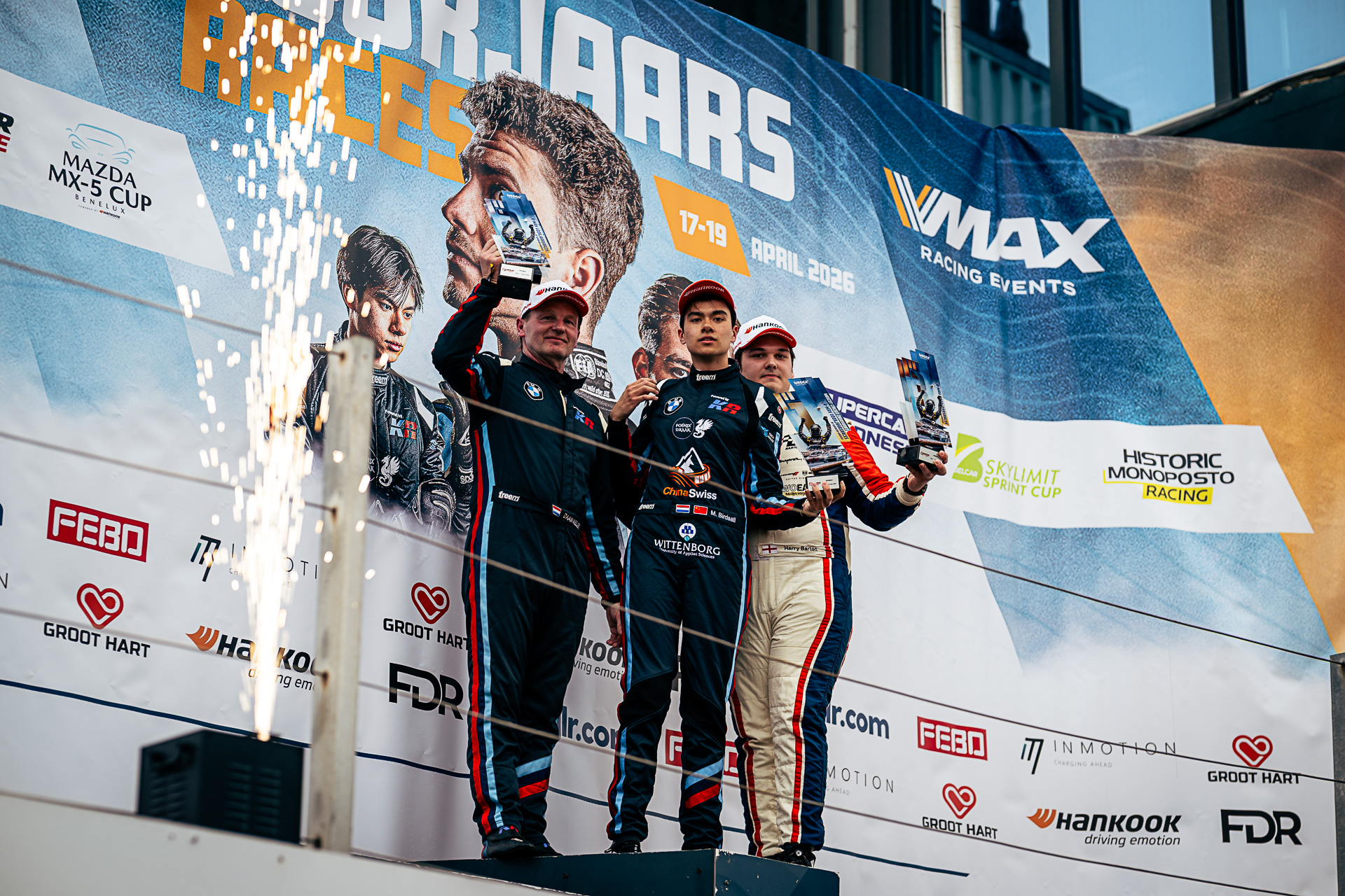 De omstandigheden De omstandigheden tijdens de eerste race van het weekend waren allesbehalve eenvoudig. Regen maakte het circuit verraderlijk glad, waardoor Daan Meijer de vele pk’s van zijn BMW M6 GT3 met uiterste precisie op het asfalt moest zien te krijgen. In de openingsfase koos hij voor een voorzichtige aanpak, maar desondanks had hij de tweede positie stevig in handen. Toen de leider zich een klein foutje permitteerde, greep Meijer direct zijn kans en nam hij de kop over. Lang kon hij echter niet op adem komen, want Marlon Birdsall zette hem van achteren stevig onder druk. De jonge coureur zocht links en rechts naar een opening, maar Meijer verdedigde zijn leidende positie knap. Uiteindelijk bleek de grip van de banden onvoldoende om stand te houden, waardoor hij zijn koppositie moest afstaan. Desondanks reed hij naar een knappe tweede plaats. Daan was realistisch: “Ik heb heerlijk geknokt in de race, waar de omstandigheden moeilijk waren. Tweede was het maximale wat er vandaag in zat!”