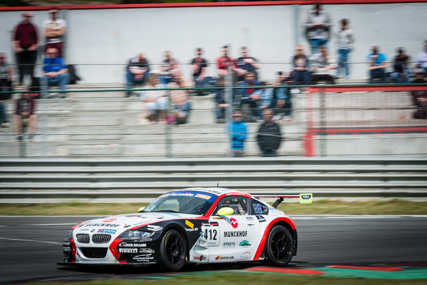 De eerste race leverde een onverwachts mooie klassering op voor Eric, de BMW Z4 coureur kwam als tweede over de streep door een sterke opmars te maken en uitstekend op de natte baan te blijven rijden. Van den Munckhof liet zich door de nattigheid niet van de wijs brengen en bleef geconcentreerd zijn lijnen rijden, waardoor hij zijn positie wist te behouden. “Half natte omstandigheden liggen me wel. Het was niet zo nat dat ik echt andere lijnen moest gaan rijden, al heb ik wel in de auto de setting van de rembalans aangepast vanwege het weer. Na de pitstops lag ik al tweede en behield die positie. Voor me zag ik Bogaerts er als een speer vandoor gaan, maar Dennis de Groot kon ik voorblijven, al moest ik er wel hard aan trekken.” Van den Munckhof wist voor een groot aantal genodigde relaties naar het podium te rijden en was daarmee uiteraard zeer tevreden.