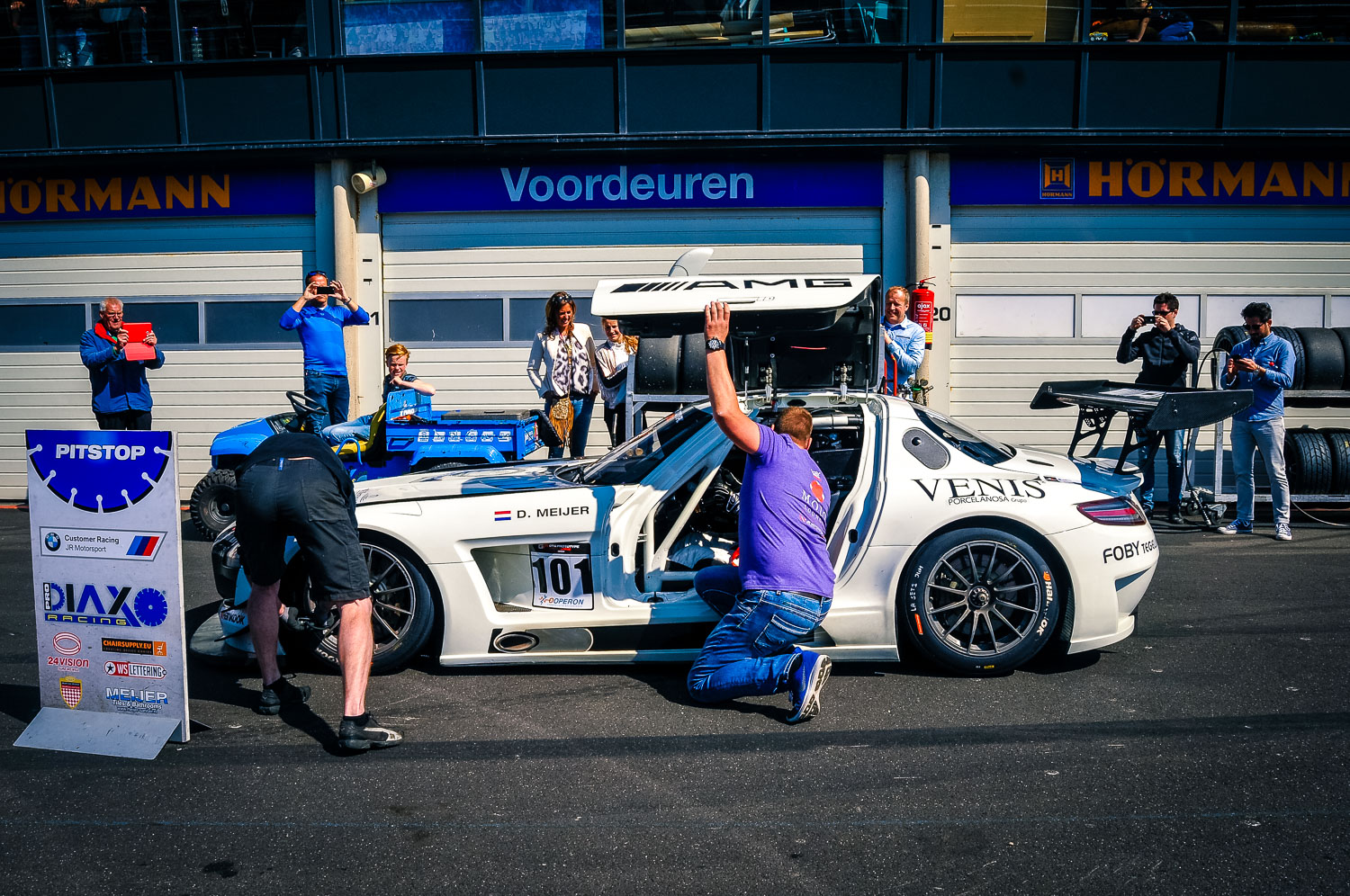 Net als zaterdag wisten de fans zondag het circuit Zandvoort in grote getalen te vinden. Een overvol paddock kon zich vergapen aan de snelle bolides, zoals de krachtige Mercedes SLS AMG GT3 van Daan Meijer. Nadat Max Verstappen het ronde record van Zandvoort scherper had gezet, was het de beurt aan de GT- en Prototype Challenge om het publiek te vermaken. Daan Meijer kwam bij de start goed weg. Hij was zeer snel, maar misschien iets te enthousiast.