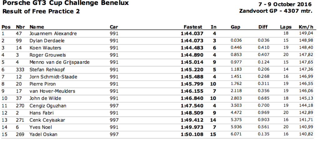 Net als in de eerste vrijetraining voor de Porsche GT3 Cup Challenge Benelux reed Alexandre Jouannem de snelste tijd. Kampioenschapsleider Roger Grouwels was met een vierde tijd de snelste Nederlander.