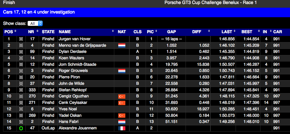 Vanwege het startincident buigt de wedstrijdleiding zich nog over de uitslag. Dit kan betekenen dat zowel Van Hover als Van de Grijspaarde een straf krijgen uitgedeeld.