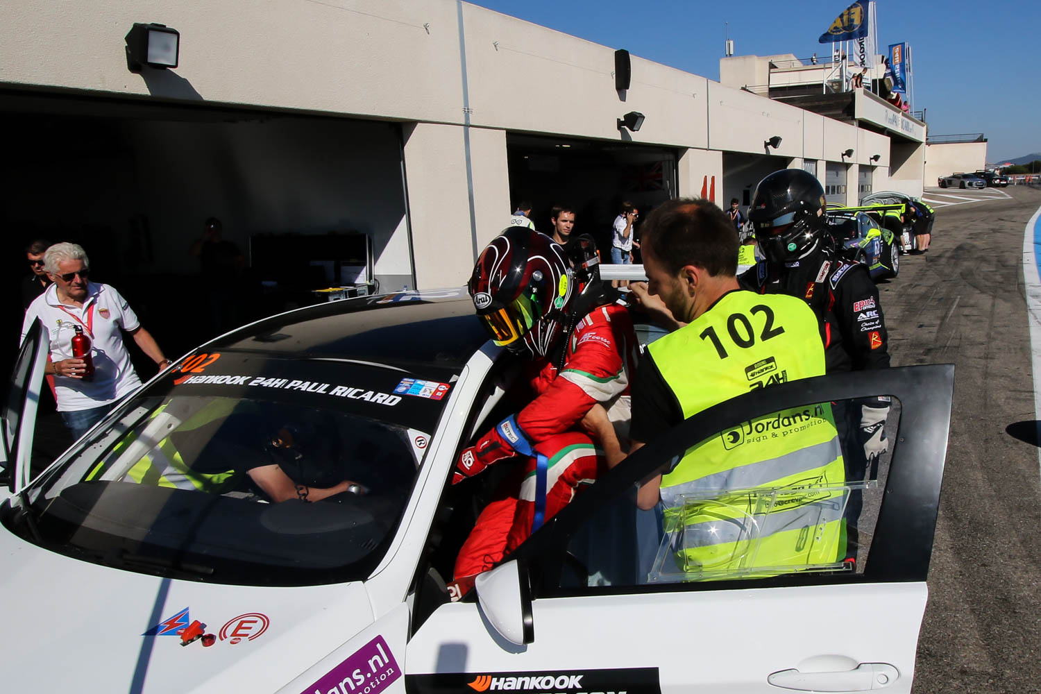 Bob Herber nam de start voor zijn rekening. Daan zag vanaf de zijlijn dat het al vroeg in de wedstrijd mis ging. Een temperatuur sensor, waardoor zijn teamgenoot de #102 BMW de pits in moest sturen en het kwartet al snel veel achterstand opliep. Daan nam de derde rijbeurt voor zijn rekening, waarin hij zich vanaf de derde positie naar de tweede stek wist op te werken. “Echt makkelijk ging het nog niet,” reageerde Daan na zijn eerste racekilometers op Paul Ricard. “We hadden problemen met de versnellingsbak, maar dat hebben we weten te verhelpen. Toen het euvel over was kon ik weer snelle rondetijden rijden en op stomen naar de tweede stek. Geen slecht racedebuut op dit voor mij nieuwe circuit.”