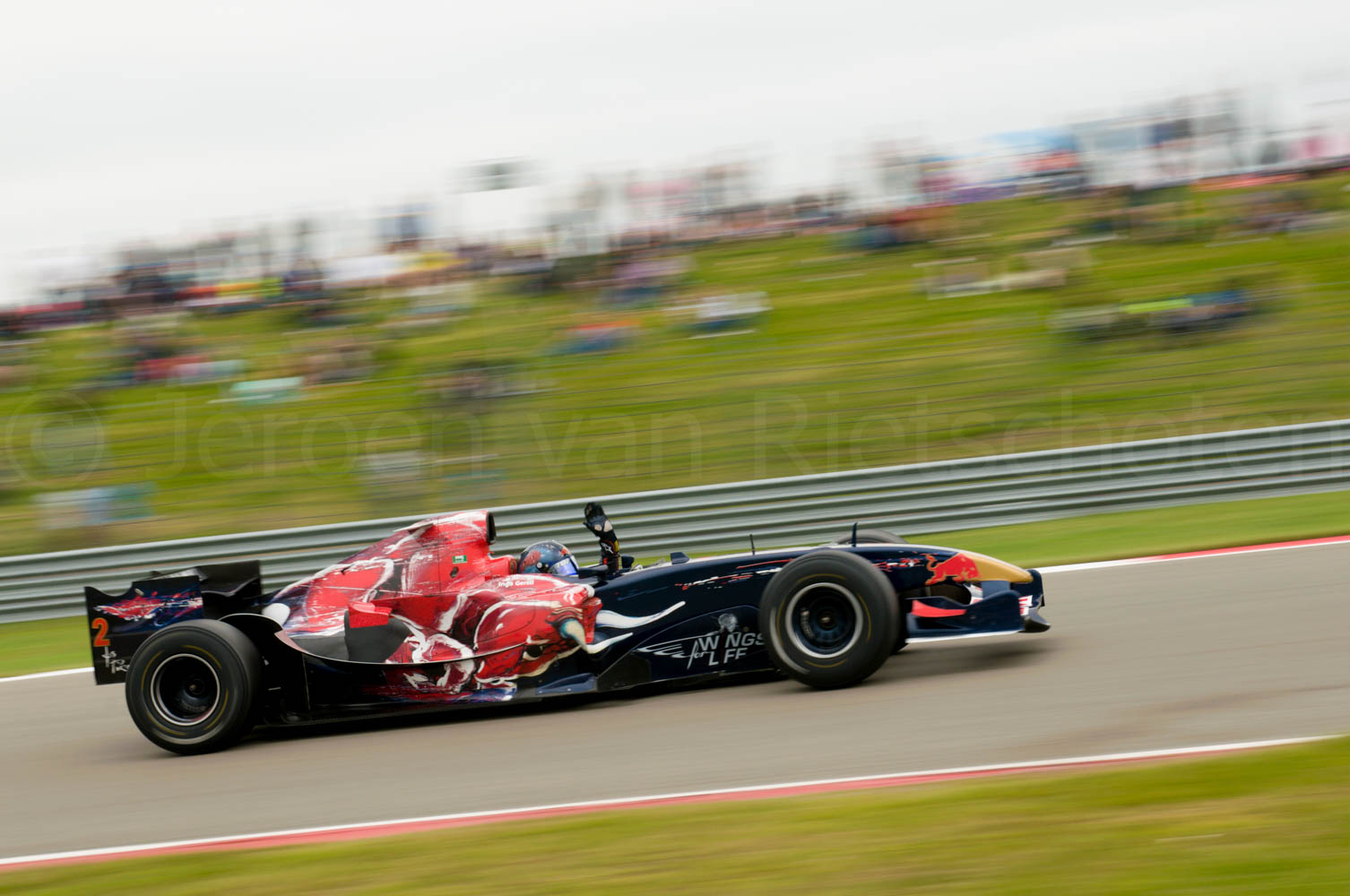 Zondagmiddag werd de tweede race in de Boss GP klasse verreden. Een inmiddels betrokken lucht deerde de tienduizenden bezoekers niet om enthousiast op de banken te gaan staan voor de geweldig dikke voormalige formulewagens.