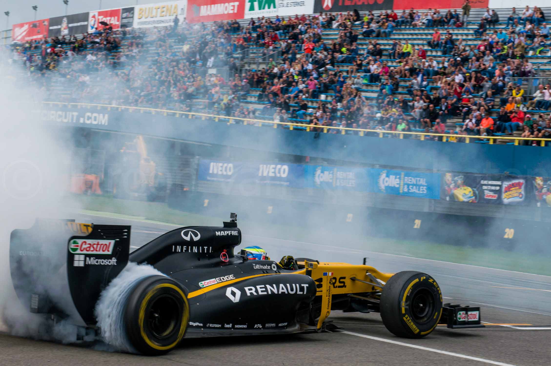 De Brit testte eerder deze week nog in Hongarije en reed vandaag in een 2012 F1-bolide om morgen het stuur aan Nico Hülkenberg over te dragen. De Duitser zal op zondag de vele duizenden toeschouwers proberen te vermaken met snelle ronden en donuts. Rowland gaf vandaag alvast een voorproefje.