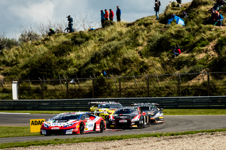 Voor de wedstrijd op zondag waren Siedler en Van Lagen gebrand op revanche. Die revanche pakte goed uit met een keurige derde startpositie voorafgaand aan de zondag-race. Estre en Jahn pakten de poleposition voor die wedstrijd en werden geflankeerd door Christopher Haase en Frédéric Vervisch (Montaplast by Land-Motorsport). Tijdens de race leek voor lange tijd Kevin Estre op weg naar de winst, met in het kielzog de bolide van Jaap van Lagen. Een regenbui zorgde voor een bandencasino, waarbij een aantal teams opteerden voor regenbanden, terwijl andere equipes kozen om te blijven racen met de profielloze slicks. Korte tijd was de regenband de beste keus, tot het aanbreken van het pitstop-window. Hierna reed het volledige veld weer op slicks. Tijdens de pitstop sneuvelden de podiumkansen voor Kevin Estre en David Jahn, nadat Estre kort voor zijn pitstop de grindbak in reed en de motor tijdens de pitstop oververhit raakte. Beter verging het voor Rahel Frey en Philip Geipel. Frey nam de start voor haar rekening in de YACO Racing Audi R8 LMS en koos tijdens de regenbui voor regenbanden. Hierna vocht ze zich weer naar voren en teamgenoot Geipel reed na een fantastische pitstop een solide eindstint op de slicks. Hierdoor pakten Frey en Geipel de zege. Jaap van Lagen maakte de keuze om op slicks te blijven rijden toen de regen op het Zandvoortse asfalt neerdaalde en hield zich goed staande in de voorhoede van het veld. Vervolgens was het aan Norbert Siedler om het tweede deel van de wedstrijd foutloos te rijden. Dit lukte prima, waardoor Van Lagen en Siedler met de Lamborghini op de tweede plaats finishten. De derde plaats ging naar Sebastian Asch en Luca Ludwig (Team Zakspeed Mercedes-AMG GT3).