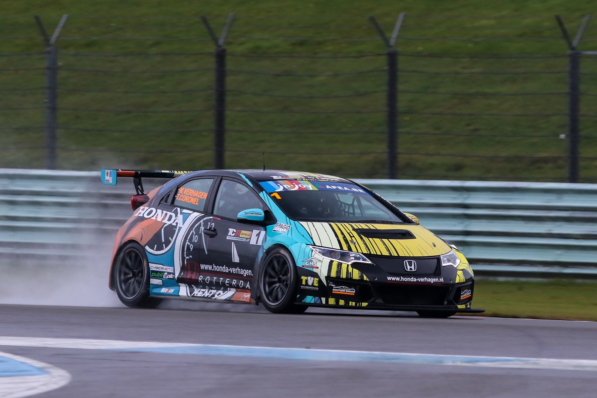 De eerste sprintrace leverde vanaf de startlijn voor Verhagen direct vier posities winst op, wat aangeeft hoe snel de Honda Civic is. Dat de andere wagens gewaagd zijn aan de snelheid van de Japanse bolide bleek toen Verhagen in een gevecht verwikkeld raakte waarbij hij even naast de baan terecht kwam en de bodemplaat en splitter beschadigde. Desondanks wist hij zich nog naar een vijfde positie op te werken, maar de schade werd gedurende de eerste sprintrace zo groot dat de tweede wedstrijd al na één ronde moest worden gestaakt.