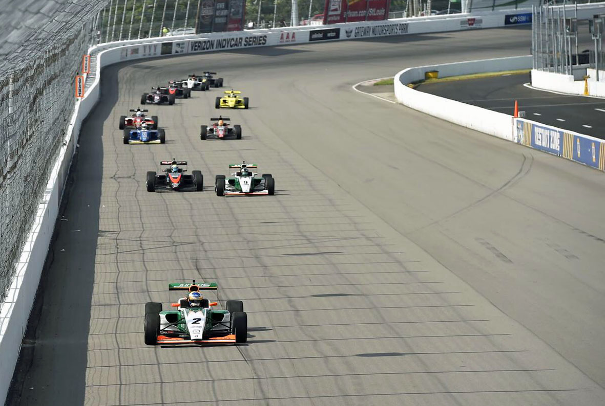 Met zijn vijfde zege op rij is KNAF Talent First-coureur Rinus van Kalmthout (Rinus VeeKay) bezig met een indrukwekkende serie in het Cooper Tires Pro Mazda kampioenschap. Door zijn eerste oval-overwinning op Gateway Motorsports Park heeft de 17-jarige rookie dit seizoen zeven van de veertien races gewonnen. Omdat zijn enige overgebleven concurrent voor de Pro Mazda-titel als zesde over de finish kwam heeft Van Kalmthout nu een voorsprong van 54 punten in de titelstrijd, rekening houdend met één schrapresultaat. Met alleen volgende week nog twee races op de Portland International Raceway weet het Hoofddorpse racetalent dat met een score van dertien punten uit deze twee races op Portland de titel voor hem is. “Het ziet er goed uit, maar ik ga op zeker en zal er alles aan doen om ook de volgende twee races te winnen”, blijft de jonge KTF-rijder strijdvaardig. Deze overwinning is voor Van Kalmthout al zijn tiende sinds hij vorig seizoen begon aan de Madza Road to Indy.