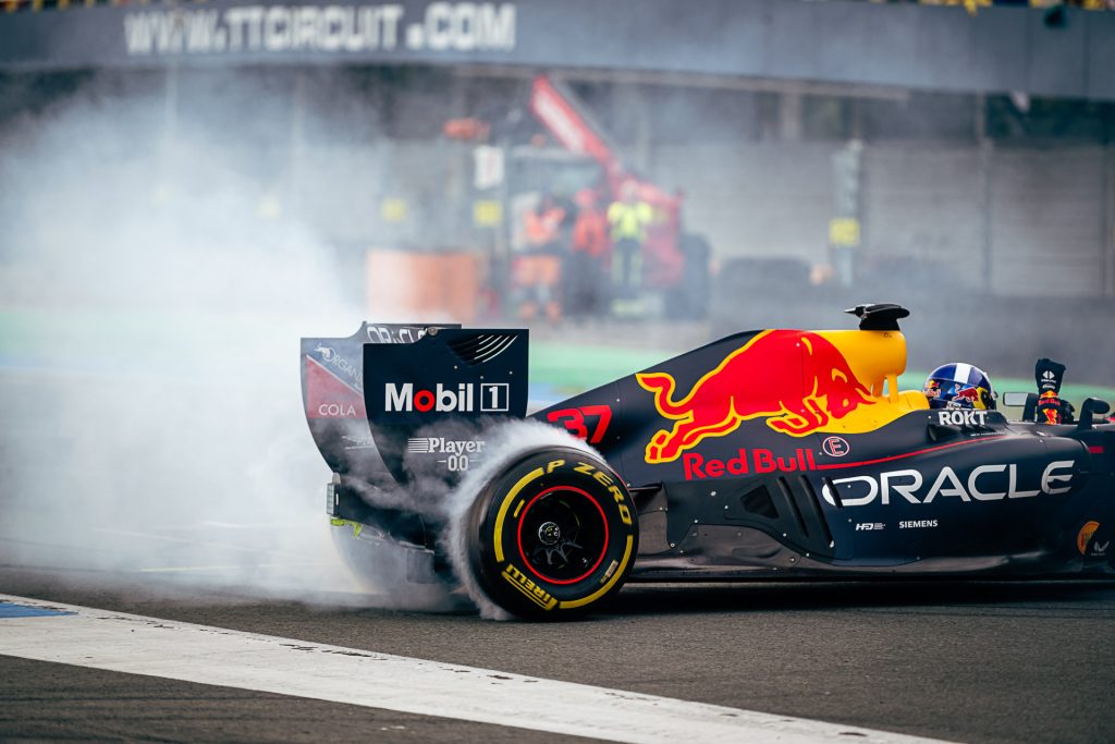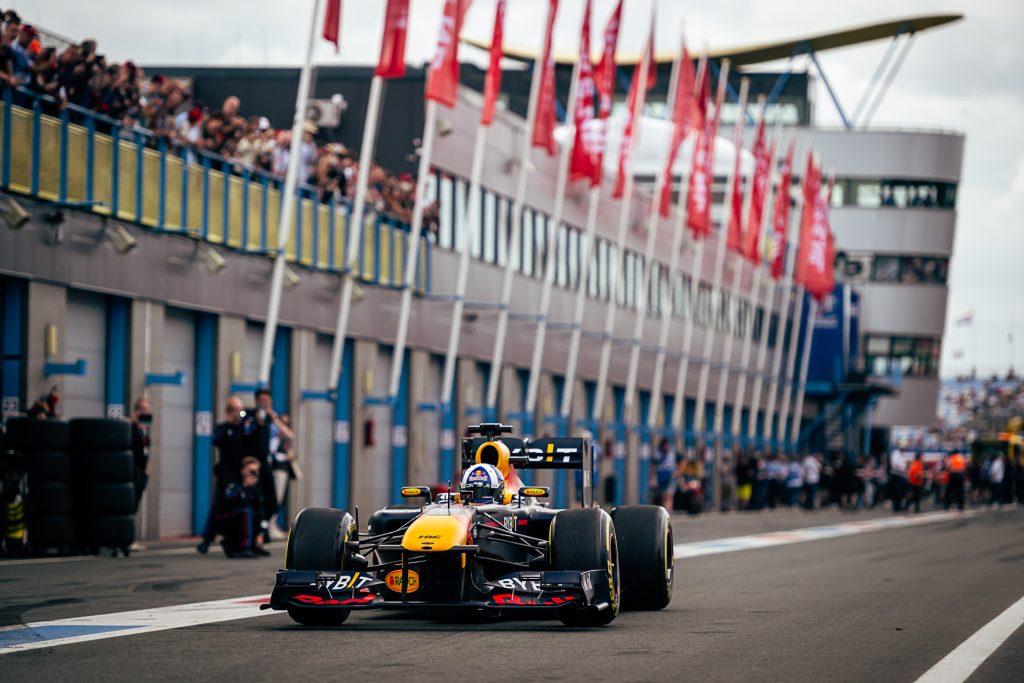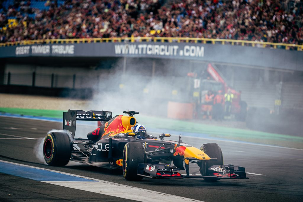 David Coulthard maakte zijn opwachting op Assen om met de Red Bull F1-bolide tijdens de Jacks Racing Dayy. De Schot liet zich zakken in de krappe cockpit van de machine, om de fans te trakteren op een aantal snelle rondes met als toetje de donuts. Een genot voor het oog en oor van iedere autosportfan.
