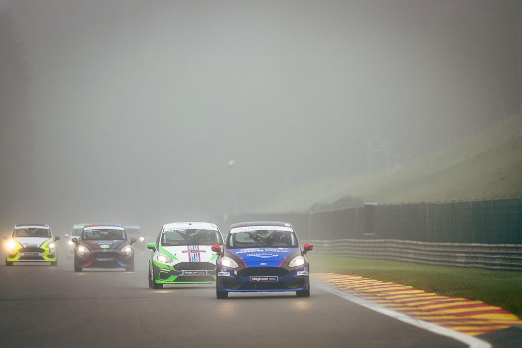 Thomas De Backer heeft op zeer mistige omstandigheden de Ford Fiesta Sprint Cup race op zijn naam geschreven. De Belg was op het circuit van Spa-Francorchamps sneller dan Jensen de Leeuw. Laatst genoemde wist aan te pikken bij de leider, maar tot een aanval kwam het niet.