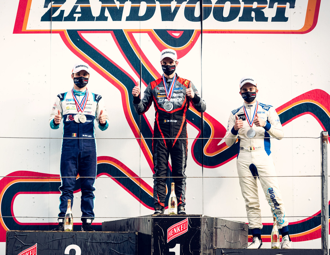 Later die dag kwam volgde de ontlading: Milan De Laet reed naar de zege, voor onder meer ex-kampioen Kenny Herremans en de regerende Belcar-kampioen Dylan Derdaele. Meteen is duidelijk over welk talent de student automechanica uit Keerbergen beschikt. De Laet reed ook nog eens de snelste wedstrijdronde bij de Belgische deelnemers! “Ik denk dat onze wagen in de regen echt top is”, glunderde Jurgen Evers. “Op een droge ondergrond missen we misschien nog drie à vier tienden, maar onze crew heeft voor een natte ondergrond werkelijk een schitterende auto klaargestoomd en achter het stuur zit een zeer snelle jongen.” In de Nederlandse klassering scoorde Nikodem Wierzbicki een derde plaats, goed voor een dubbel feestje in de box van het team uit Bree. “Veel feesten was er niet bij”, lachte Milan De Laet, “want we moesten de derde race nog afwerken.”