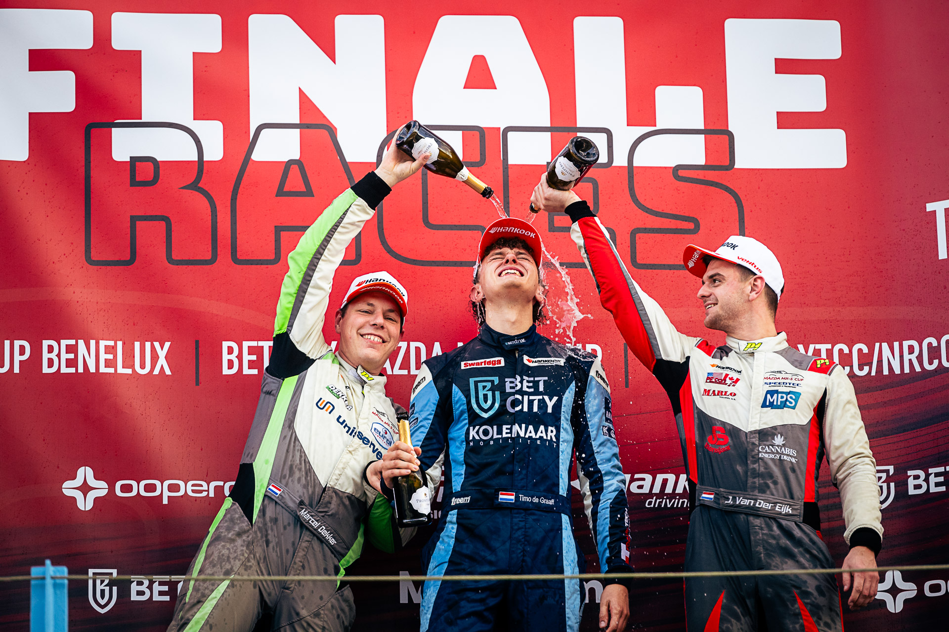 De kersverse kampioen Timo de Graaff heeft de afsluitende wedstrijd van de Mazda MX-5 Cup op zijn naam geschreven. Het was een prachtige strijd vooraan, waarbij er zo nu en dan een klein uitstapje naast de piste werd gemaakt. Daarbij was het Timo die vanaf de eerste startrij begon, zo ook naar de zege stuurde.