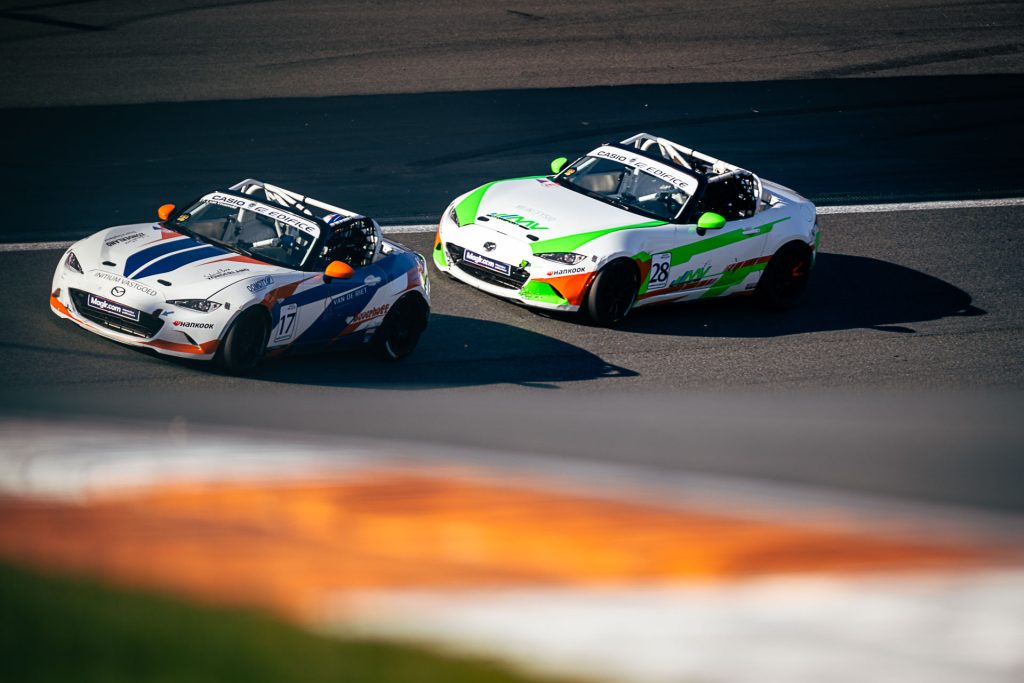 De Mazda MX-5 race was zeer spannend en dit betekende dat er voor iedere millimeter werd gevochten. Leon van Verseveld en Mees Houben baanden zich een weg naar voren. Delano de Ketele volgde hen. Het ging niet bij iedereen goed, zo schoot Xavier van der Schoot van de baan. Ook Marcel Dekker kon zich niet handhaven vooraan.