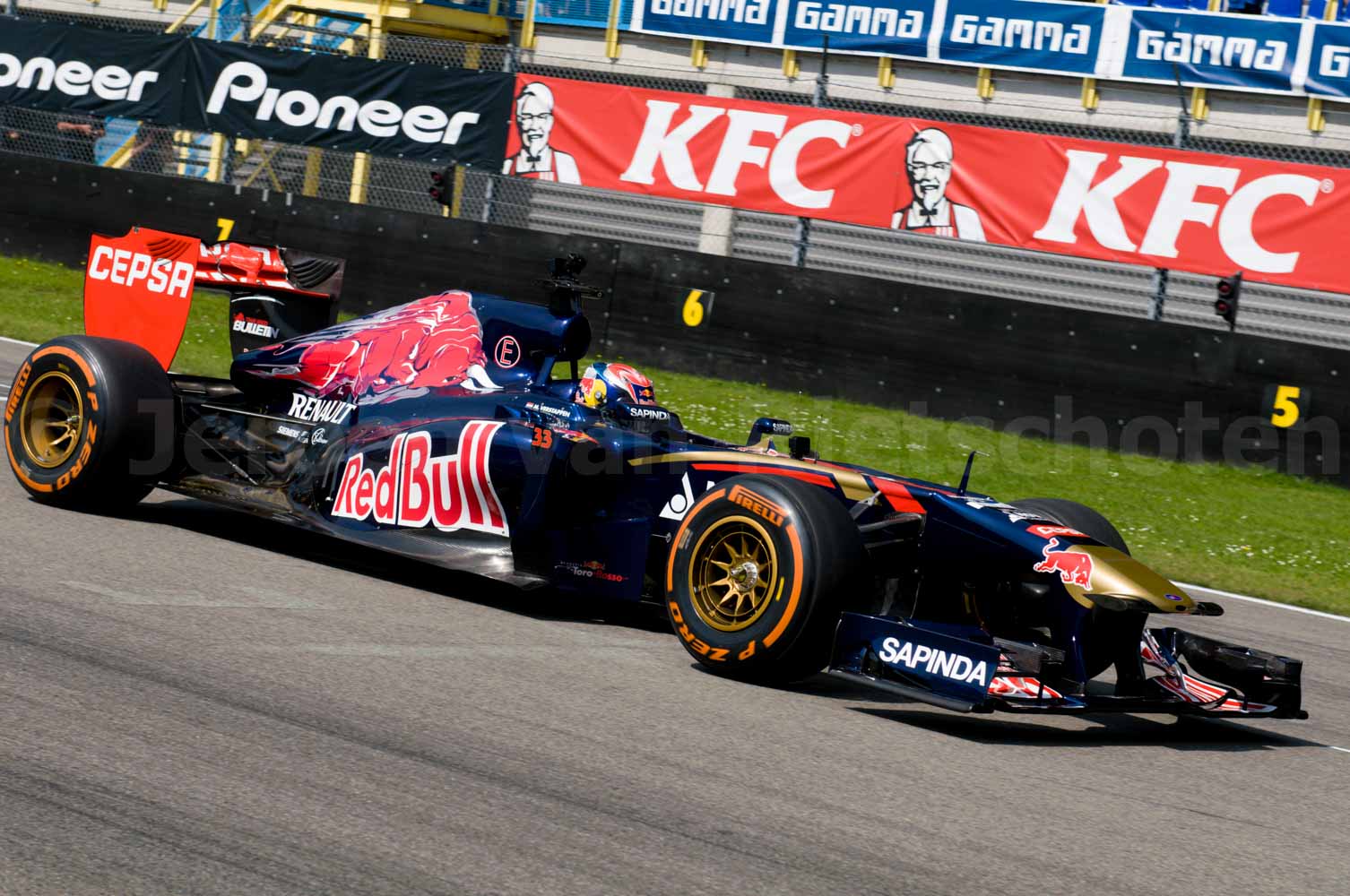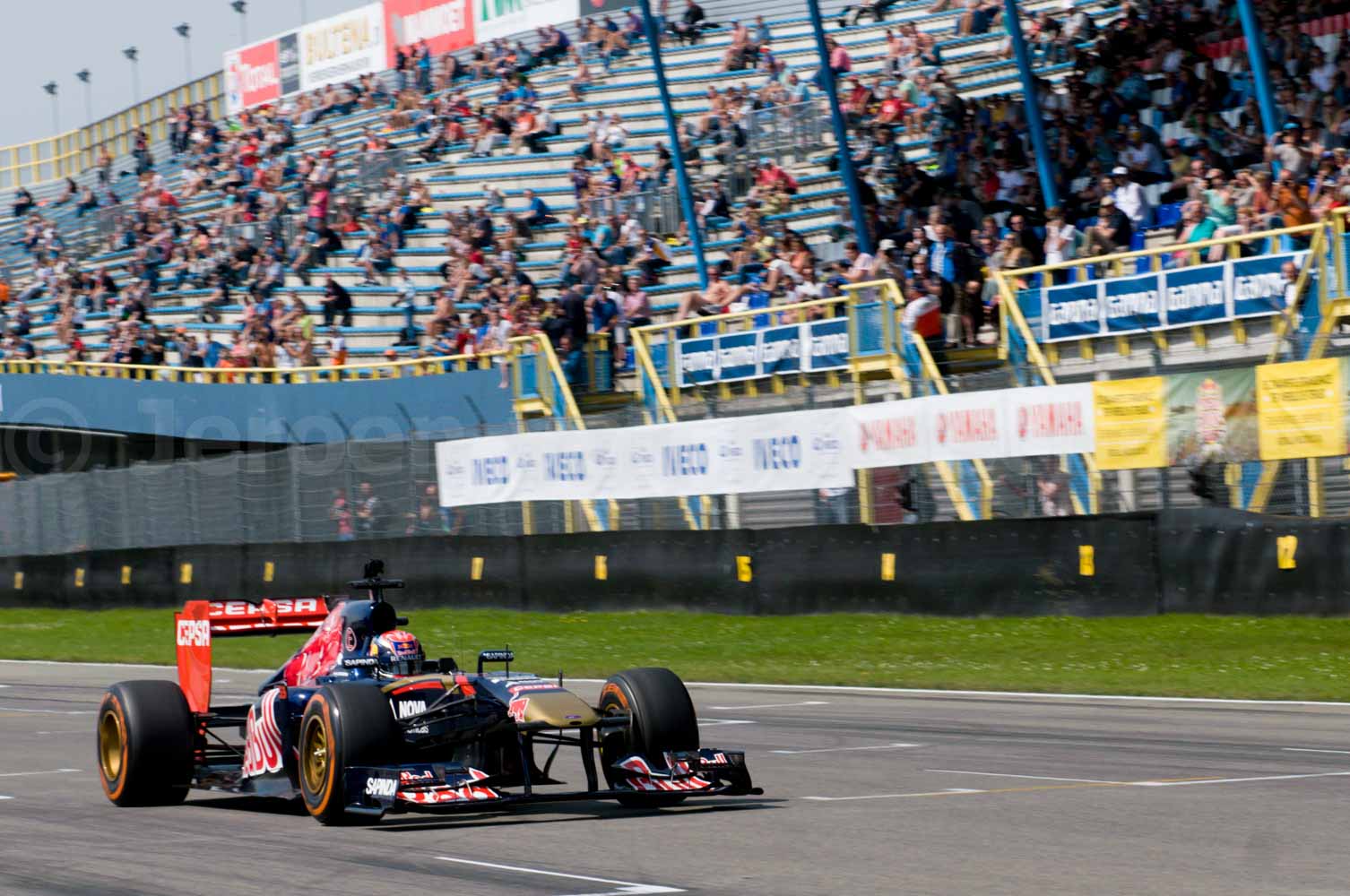 De ouderwets gillende 2,4 liter V8 motor in het achteronder van de Red Bull in kleurenschema van Toro Rosso gierde over het Assense circuit. Voor Max Verstappen een mooie kans om een paar rondjes op snelheid te kunnen rijden en de grenzen op te zoeken van de de voor deze gelegenheid uit het museum gehaald Red Bull. De jonge Limburger vermaakte zich uitstekend in de wagen, maar moest zich op de eerste dag nog inhouden. Donuts en proefstarts werden hem op zaterdag nog niet toegestaan, de auto moet immers heel blijven om tijdens de zondag als er vele tienduizenden bezoekers op de tribunes zitten, maximaal los te kunnen gaan.