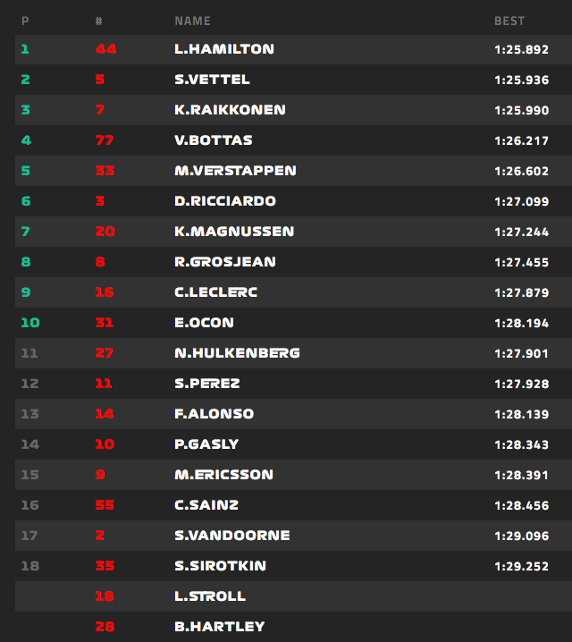 Aan kop ging de strijd tussen Ferrari en Mercedes. Red Bull was snel, maar kon geen vuist maken tegen de Duitsers en Italianen. In eerste instantie leek Sebastian Vettel voor de pole te kunnen gaan. Hij was in alle sessies de snelste en reed ook nog eens een zeer sterke ronde in de laatste kwalificatie. In zijn laatste run was het Lewis Hamilton die echter met een recordtijd onder de tijd van zijn Duitse tegenstrever dook.