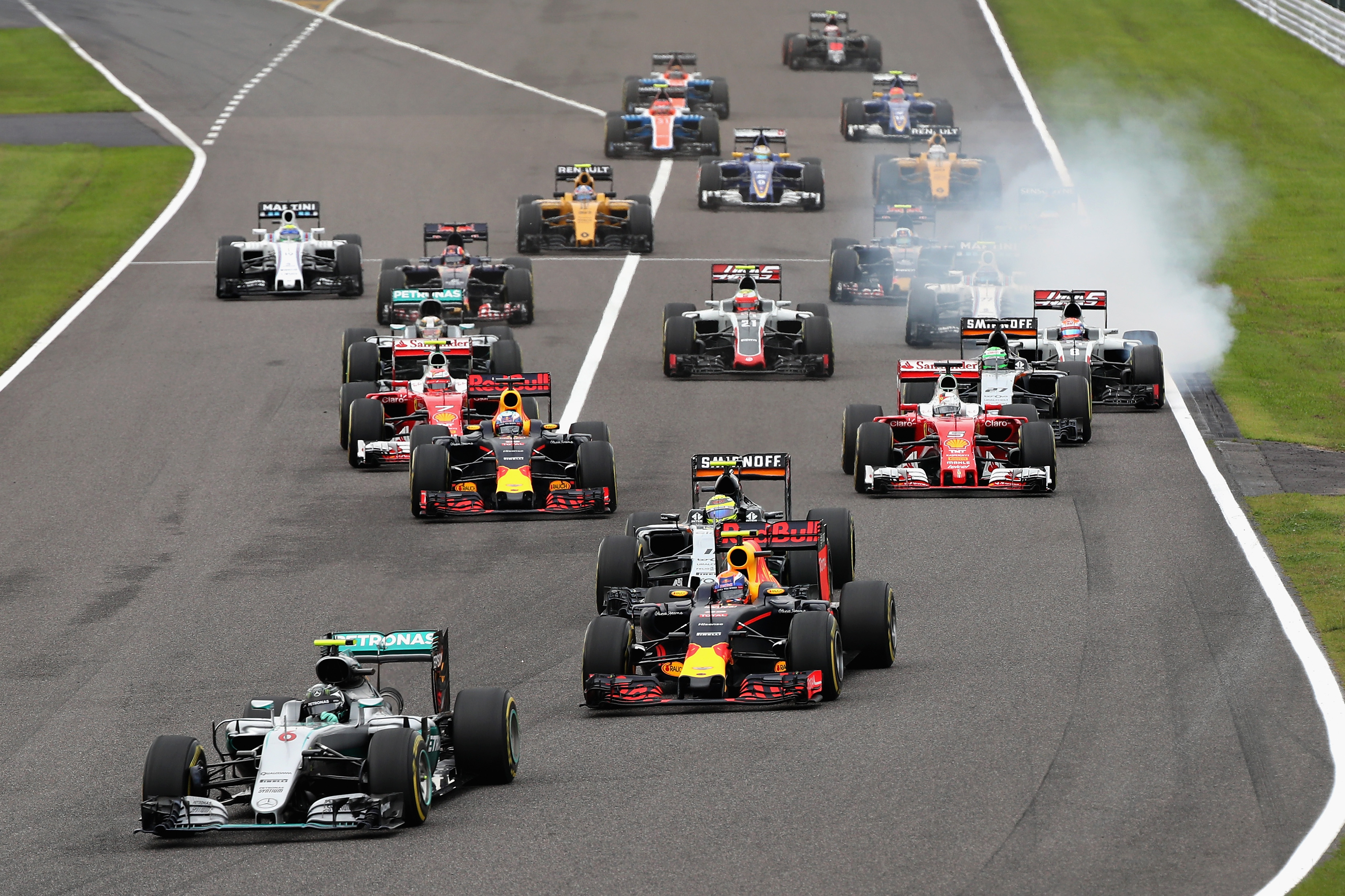 Nog voordat de lichten op groen gaan, heeft Max al een plekje gewonnen: Kimi Räikkönen laat nog voor de start een nieuwe versnellingsbak monteren, waardoor hij op de startopstelling terug wordt gezet van plaats drie naar plaats acht. Dat betekent dat Max vanaf de derde positie op de racelijn mag starten, wat hem geen windeieren legt: Lewis Hamilton komt niet van zijn plek, waardoor Max direct de tweede positie kan pakken en vlak achter Nico Rosberg de eerste bocht ingaat. Achter Max heeft Sergio Perez een goede start en vormt een buffer naar Daniel Ricciardo op de vierde plek, wat gauw een vijfde plek wordt wanneer Sebstiaan Vettel de Australiër buitenom in de 130R voorbijsteekt.