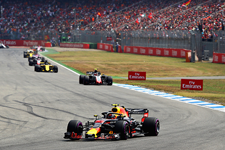 Max Verstappen is tijdens de Grand Prix van Duitsland als vierde geëindigd. In de enerverende wedstrijd, die door Lewis Hamilton werd gewonnen, kon de Nederlander van Aston Martin Red Bull Racing geen potten breken. Valtteri Bottas, evenals Hamilton rijdend voor Mercedes, werd tweede, gevolgd door de Ferrari van Kimi Raikkonen. Sebastian Vettel verloor in de slotfase de wedstrijd door met zijn Ferrari van de baan te schieten.