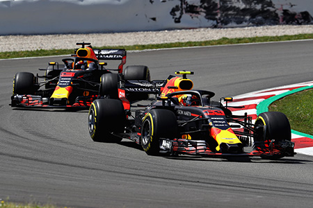 Max Verstappen heeft zijn eerste podium van het seizoen gepakt door als derde te eindigen in de Grand Prix van Spanje. De Nederlander kon zijn vijfde plek op de grid vasthouden na de start. Een uitvalbeurt van Kimi Raikkonen en een pitstop van Sebastian Vettel tijdens een virtual safetycar-periode zorgden ervoor dat Verstappen opschoof naar de derde plek. Ondanks een beschadiging aan zijn voorvleugel door een incident met achterblijver Lance Stroll, wist Verstappen Vettel achter zich te houden en zo de derde plek veilig te stellen. Lewis Hamilton reed naar een dominante overwinning, met bijna twintig seconden daarachter Mercedes-stalmaat Valtteri Bottas.