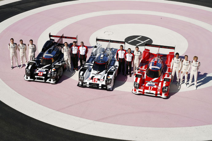 Porsche heeft vandaag de nieuwe 919 Hybrid LMP1-bolide voorgesteld. Op het circuit van Paul Ricard trok het merk het doek van de wagen. Opvallend is dat de wagen in drie verschillende kleurstellingen rijdt.