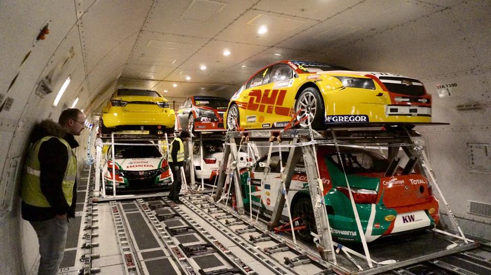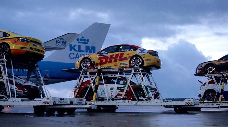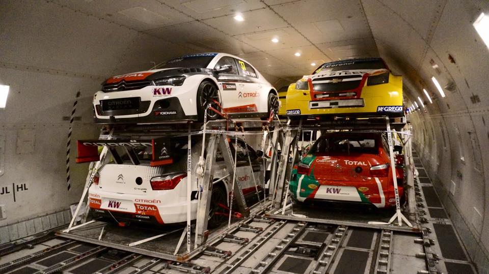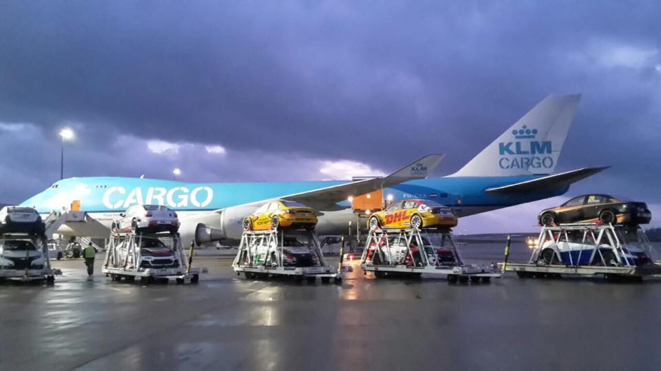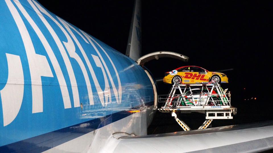 De ROAL Motorsport Chevrolet, waarmee Tom Coronel dit seizoen uitkomt in het WTCC-kampioenschap is onderweg naar Zuid-Amerika. Alle WTCC-bolides zijn aan boord van een KLM 747, voor de seizoensopener op het Autódromo Termas de Río Hondo in Argentinië.