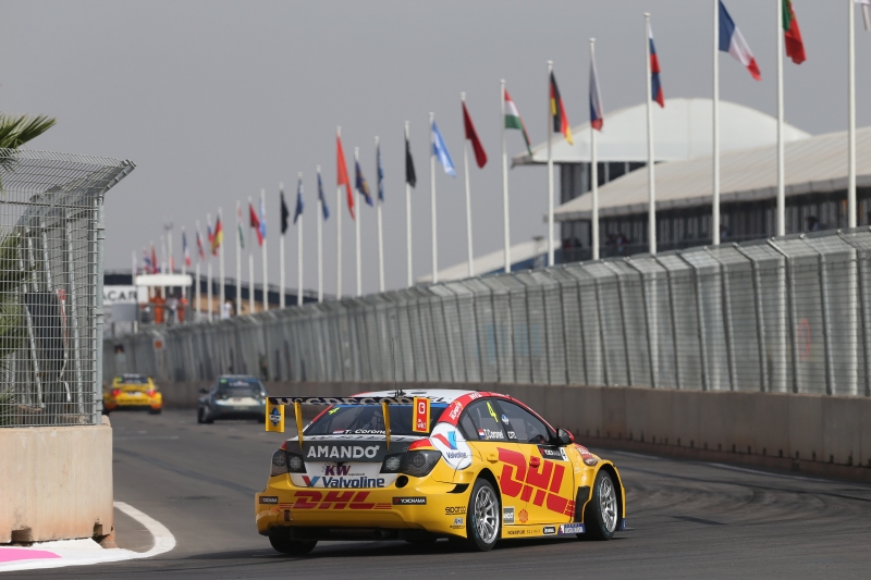 Uitslag race 1: 1.José Maria López 14 ronden in 24:31.802; 2.Ma Qing Hua op 0.942; 3.Sébastien Loeb op 4.492; 4.Mehdi Bennani op 5.405; 5.Yvan Muller op 21.617 (allen Citroen Racing C-Elysee); 6.Tiago Monteiro op 22.986 (Honda Civic WTCC) en uitgevallen Tom Coronel (ROAL Motorsport Chevrolet Cruze).