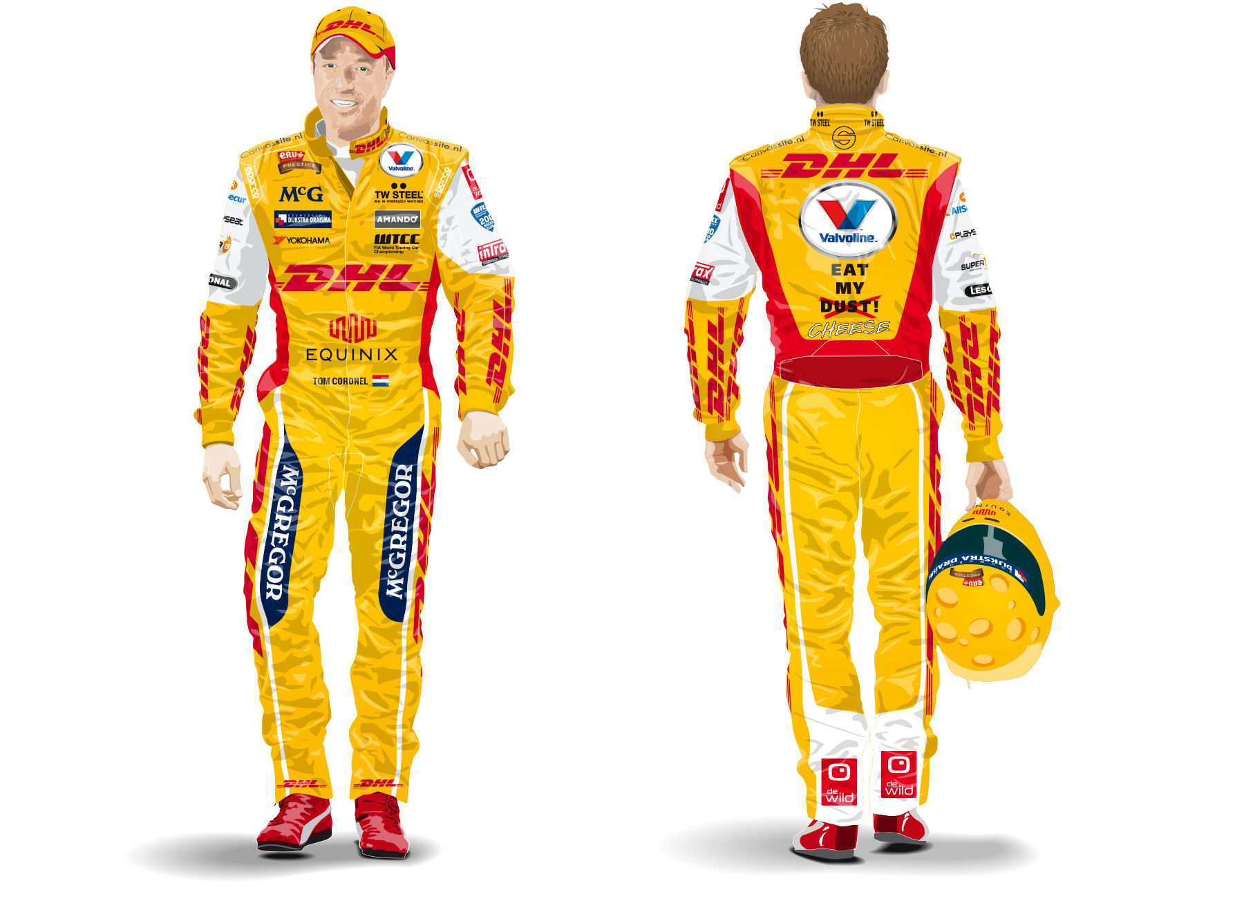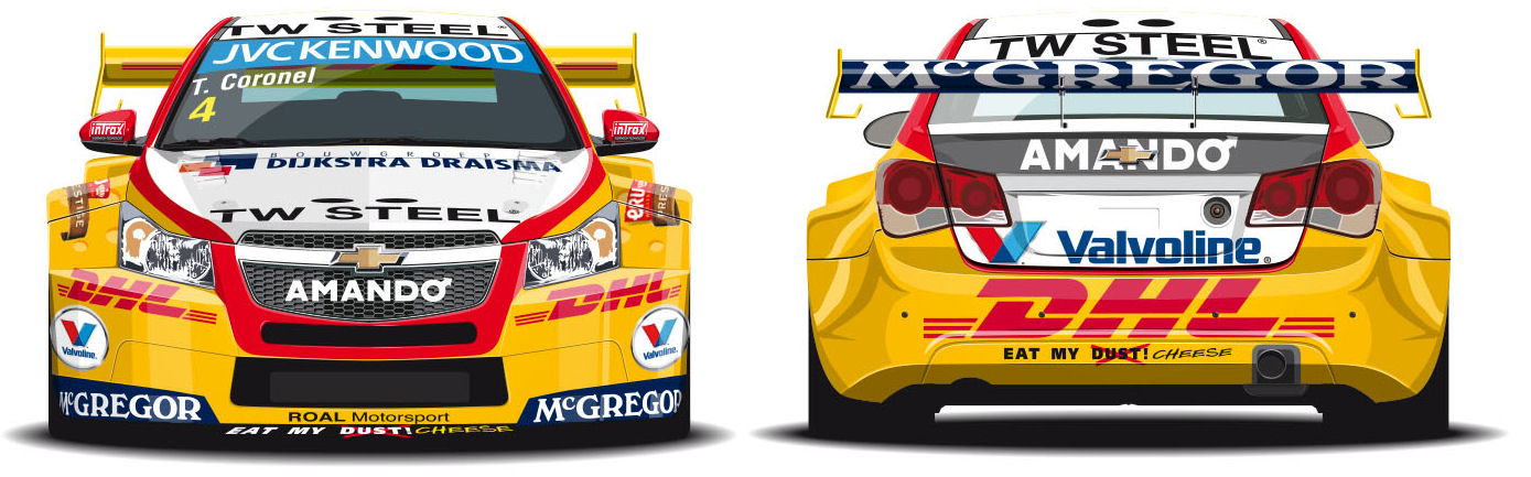 De laatste maanden van het afgelopen jaar verliepen voor Tom Coronel uiterst hectisch. "Na mijn WTCC-seizoen begonnen direct de voorbereidingen op het nieuwe jaar. Ik was op dat moment al in gesprek met Ken Allen, CEO van DHL, om te kijken wat wij in 2015 voor elkaar konden betekenen. Aan de andere kant stond er voor begin januari nog een uitstapje naar de Dakar-zandbak gepland. Iedereen weet inmiddels hoe dat is afgelopen en direct nadat ik terug in Nederland was, ben ik verder gegaan met het WTCC-verhaal. Het is super dat ik er weer een jaar bij ben. Volgens mij ben ik daarmee ook één van de rijders die het langst aan deze serie meedoet. En voor het vijfde achtereenvolgende jaar samen met het team van ROAL Motorsport, van Roberto Ravaglia en Aldo Preo. Dat geeft een goed gevoel en veel vertrouwen. Vorig jaar zijn wij met elkaar aan het Cruze-avontuur begonnen en dat kende hoogte- en dieptepunten. Daarbij hebben wij heel veel geleerd en dat geeft ons een goede start voor 2015. Technisch is de auto vrijwel gelijk aan vorig jaar. Het allergrootste verschil is dat de kleur blauw plaats maakt voor geel. Dat heeft natuurlijk alles te maken met de komst van sponsor DHL. Wat voorheen geel was, wordt nu blauw, want McGregor zal ook in 2015 een van mijn sponsors zijn. Die kleur geel komt ook terug in de helm. Net als in Dakar ga ik in het komende WTCC-seizoen van start met een kaaskophelm met Eru Kaas voor Kerels-livery. Dus ‘Eat my Dust’ maakt daar plaats voor ‘Eat my Cheese’. De kleur geel zal veel bepalender worden in 2015."