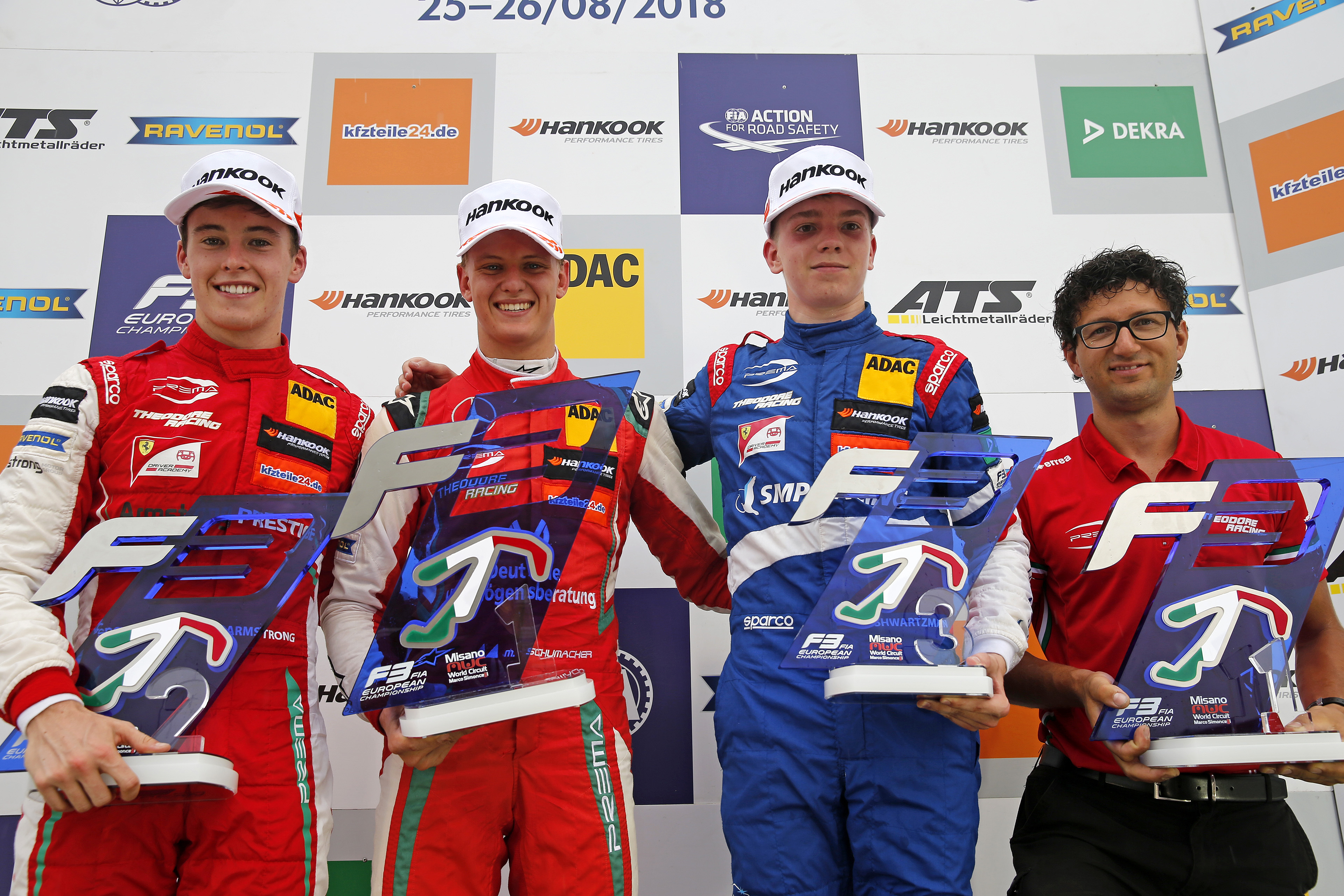 De 19-jarige zoon van racelegende Michael Schumacher heeft op het Italiaanse circuit van Misano de winst opgeëist door van start tot finish de leiding in handen te nemen. Hij won de race vóór zijn twee PREMA Theodore Racing teamgenoten Marcus ARmstrong en Rober Svartzman. Het drietal wist bij de start goed weg te komen en kon, na de nodige druk van de achtervolgers, hun posities vasthouden tot aan de vlag.