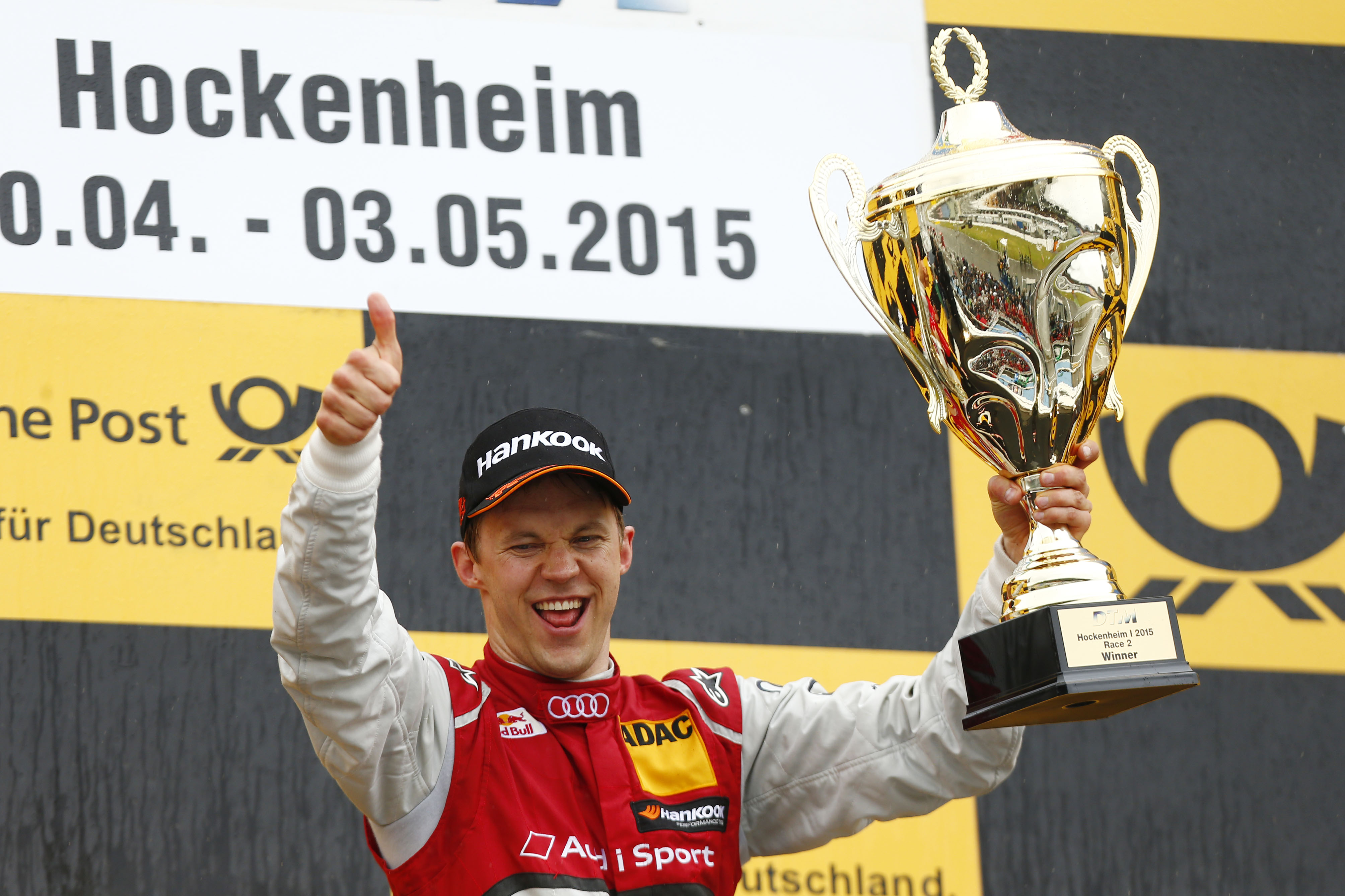 Mattias Ekström heeft op een nat Hockenheim de overwinning gepakt. De Zweed zorgde er zo voor dat beide overwinningen van het weekend naar Audi gingen. Achter Ekström was het Eduardo Mortara. Gary Paffett met zijn Mercedes legde beslag op de derde stek.