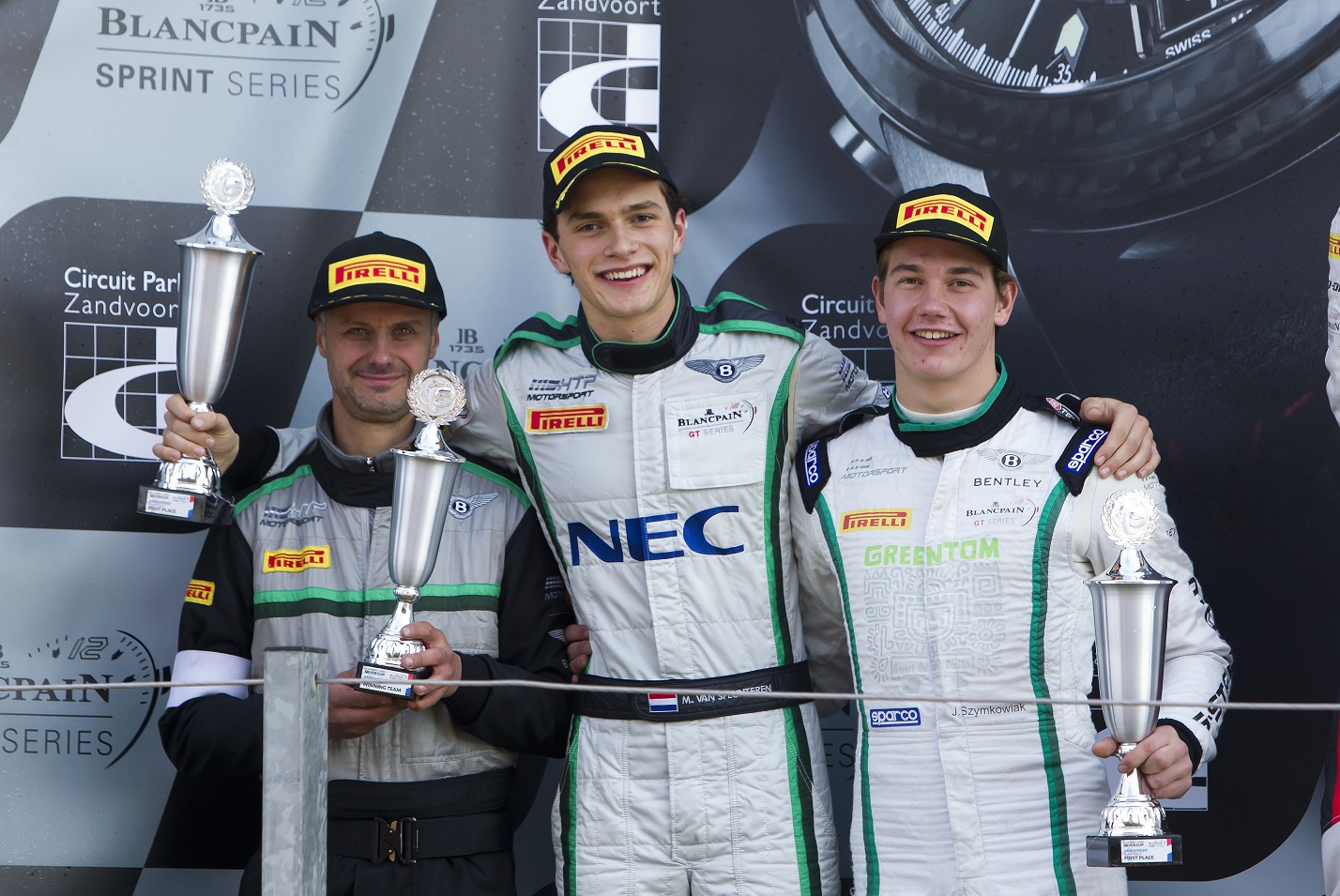 Voor het oog van een groot aantal genodigden van sponsor NEC ging zondag de hoofdrace van start op het zonovergoten circuit van Zandvoort. Jules Szymkowiak startte erg goed en lag in de Tarzanbocht vierde, maar door een ongeluk net achter de Bentley kwam er een ‘virtual safety car’ situatie. Maar voordat de eerste ronde was voltooid werd die al weer opgeheven. Szymkowiak werd verrast door de herstart en verloor daarbij een aantal plaatsen. Maar gaandeweg de race kwam hij weer terug en door wederom een strakke pitstop lag de NEC Bentley na de verplichte pitstop zevende. Vervolgens was het aan Max van Splunteren om er een mooi eindresultaat uit te slepen. Dat lukte en met de zesde plaats behaalden Van Splunteren en Szymkowiak het beste resultaat van het seizoen; uiteraard wonnen zij ook de Silver Cup en pakte Szymkowiak in die categorie de titel. “Wat een geweldig einde van het seizoen! Ik heb het dit jaar echt naar mijn zin gehad bij Bentley Team HTP,” aldus Max van Splunteren. “Het was niet altijd gemakkelijk en we hebben hard moeten werken, maar het rijden met de Bentley is een mooie ervaring. En ik heb het enorm getroffen met mijn teamgenoot Jules Szymkowiak. Ik hoop hier volgend jaar een vervolg aan te kunnen geven.”