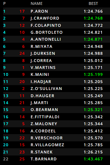 Paul Aron heeft met een minimale marge van 0,002 seconde de polepositie voor de neus van Jak Crawford weggekaapt.