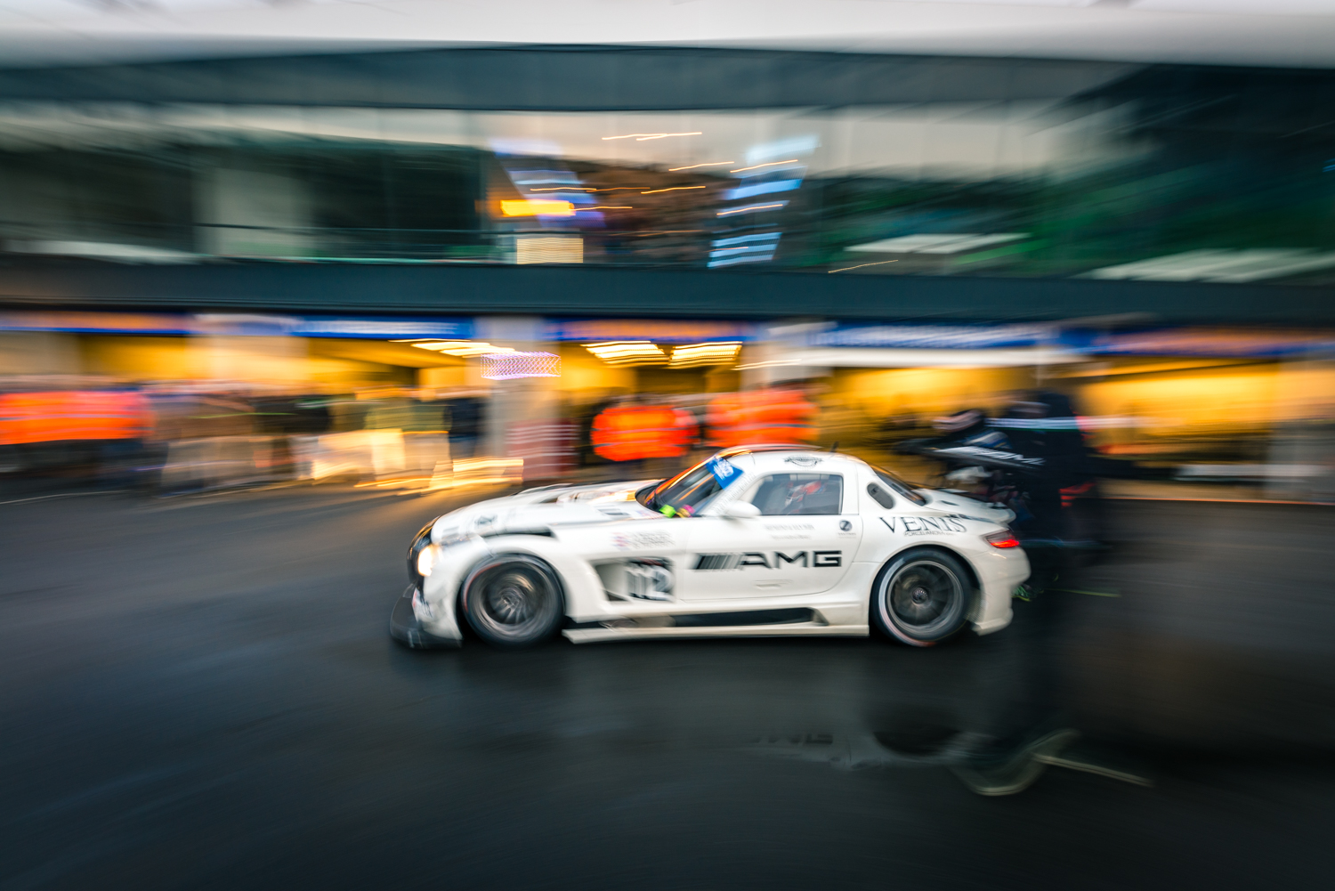 Bij de staande start, voorafgaand aan de vier uur durende wedstrijd, kwam de Mercedes lastig van zijn plaats. Snel kon Daan Meijer het vermogen van de fraai bulderende machine optimaal benutten en al snel weer een opmars inzetten. Na de openingsronde moest de opmars echter worden onderbroken omwille van een lekke band en extra pitstop. Geluk bij een ongeluk was dat de wedstrijdleiding op dat moment een Code 60 uitvaardigde. Door de lage snelheid op de baan kon de Mercedes een extra stop maken zonder op onoverbrugbare achterstand te komen. Met hernieuwde moed toog Daan weer de baan op om zich snel naar de derde positie algemeen terug te knokken. Helaas voor hen konden ze deze positie niet verder uitbouwen, maar kregen te maken met technische malheur die hen ver terugwierp. Na een ongeplande pitstop om de nodige zaken aan de aandrijflijn aan te passen konden de mannen hun weg vervolgen en vanaf de laatste positie weer aan een opmars beginnen.