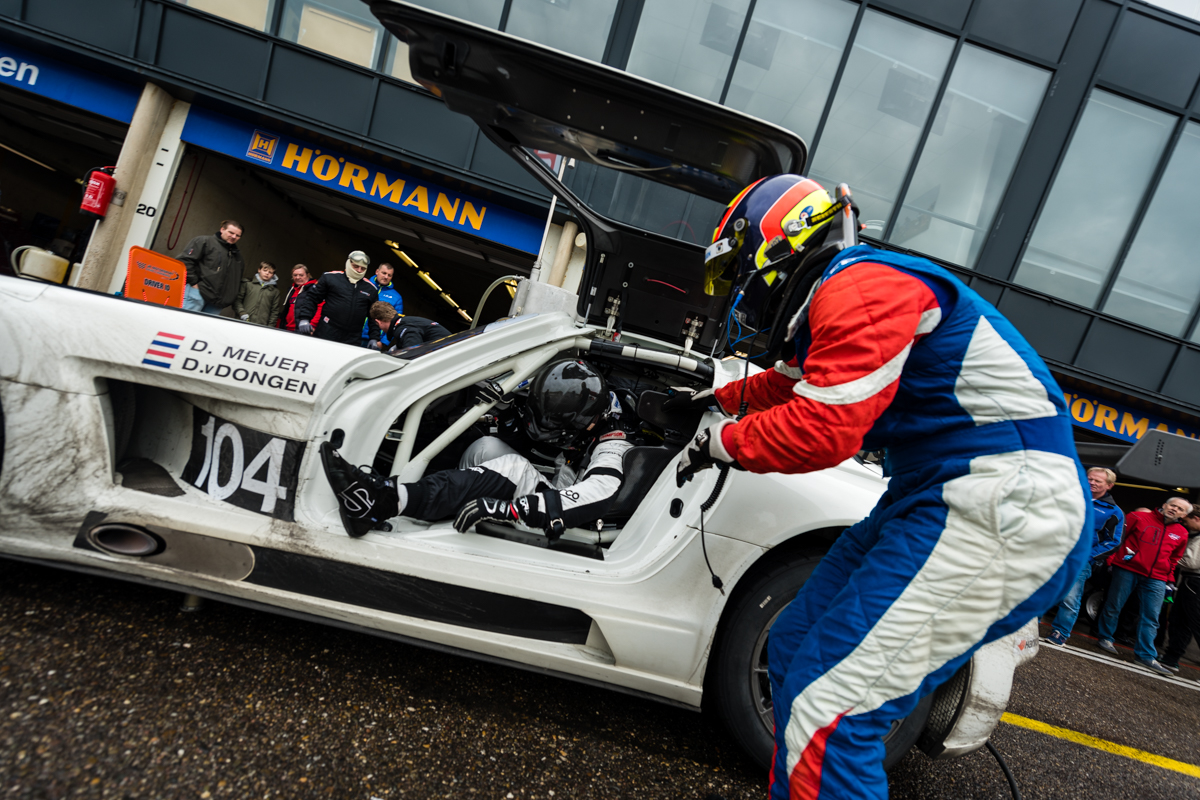 De snelle Pumax veroverde bij de start direct de eerste positie ten koste van Daan Meijer en Danny van Dongen in de Mercedes SLS GT3, die naar het tweede plan werd terugverwezen. Binnen een half uur droogde de vochtige baan echter zo veel op dat slicks de beste keuze waren en de kop van het veld voor een vroege pitstop en bandenwissel binnen kwam.