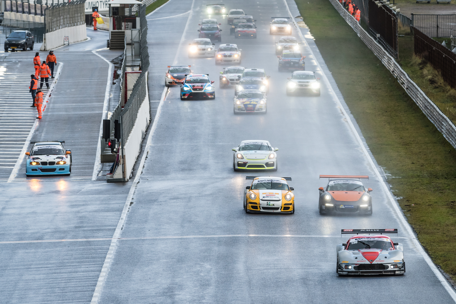 Na drie uur werd de race geneutraliseerd. Door grote kans op onweer, werden de baanposten geëvacueerd. Zonder de hulp van de baancommissarissen konden de coureurs niet verder. Meer dan twintig minuten reden de heren met maar 60 kilometer per uur over de baan. In de tussentijd pakten de wolken samen boven Zandvoort. Daan Meijer die vanaf de laatste plek overall naar de kop van divisie II reed, besloot als een van de eerste over te stappen naar regenbanden. Dit pakte goed uit en ook veel andere equipes volgenden dit voorbeeld. Toen het veld werd losgelaten hagelde het enorm en was de baan spek glad.